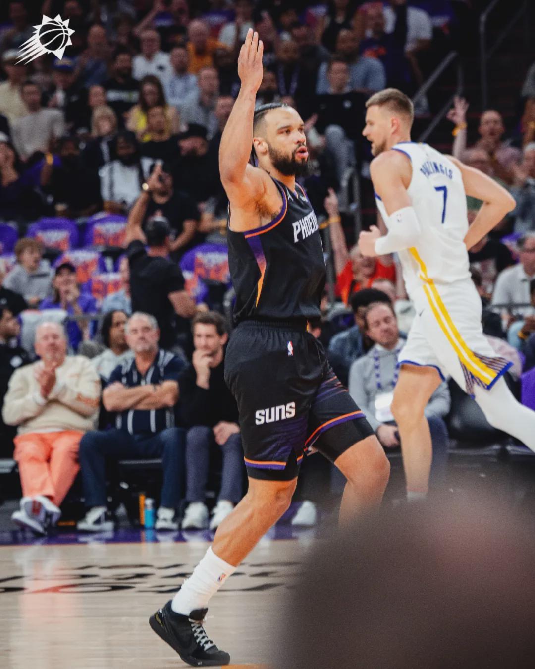 勇士的轮转防守总是慢一步,给了太阳不少空位三分的机会。第一节打完,太阳33-15领先勇士18分。勇士三分9中1,太阳三分15中6,失误数勇士8-4。第二节狄龙突然上头,连续单打不中,单节投篮5中0,破坏太阳的进攻节奏。