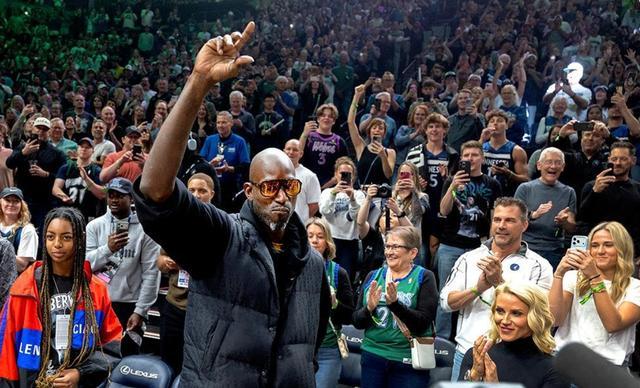 在森林狼与鹈鹕比赛场边,来了一位重量级的嘉宾,他就是加内特。森林狼官方也在现场大屏幕上欢迎加内特回归。这是加内特时隔8年重返森林狼主场看球。在与前老板格伦-泰勒关系不睦之后,加内特曾一度销声匿迹,如今森林狼更换了老板,加内特不仅成为球队大使,他的21号球衣也将退役。