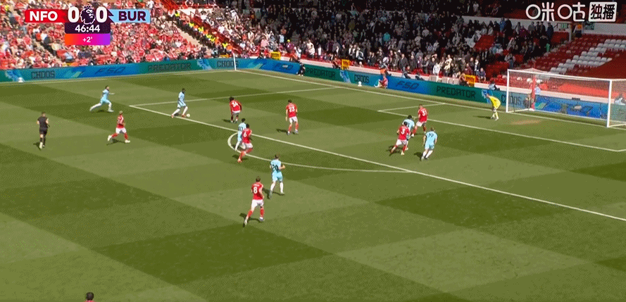 北京时间北京时间4月19日21:00,英超第33轮,诺丁汉森林主场对阵伯恩利。上半场,沃德-普劳斯任意球攻门被扑出,穆里略伤退,半场补时阶段,弗莱明推射破门,半场战罢,诺丁汉森林0-1伯恩利。
