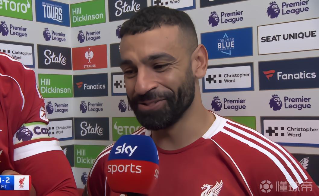 英超第33轮,利物浦客场2-1击败埃弗顿,此役为利物浦首开记录的萨拉赫赛后接受了天空体育的采访。
