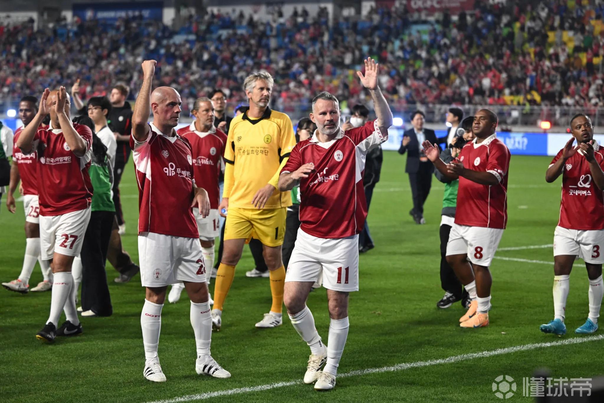 曼联的传奇人物们在韩国水原世界杯体育场重聚,与水原三星传奇队进行了一场友谊赛。红魔英雄们组成的这支队伍,全部由曾在传奇主帅亚历克斯-弗格森麾下效力的昔日球员构成。